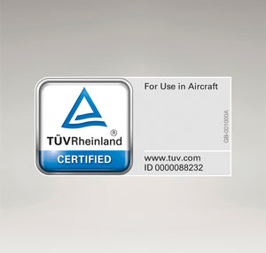 – TÜV-godkänd för användning ombord på flyg