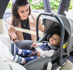 - Placera babyskyddet bakåtvänt och installera med bilens trepunktsbälte eller klicka det på kompatibel ISOFIX-bas (i-Base™ Encore eller i-Base™ LX 2).