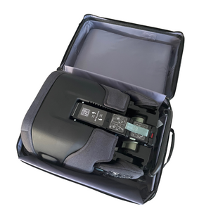 Fäll ihop TinySeats Two enligt instruktionerna och placera den i Travel Case. Säkra stolen med de inre remmarna och lås väskan med det TSA-godkända låset. Lägg eventuellt en spårningsenhet i innerfickan. Använd teleskophandtaget och hjulen för enkel transport genom flygplatser, stationer eller terminaler. När du når din destination öppnas väskan enkelt, och stolen kan installeras direkt i bilen med ISOFIX eller bilens trepunktsbälte.