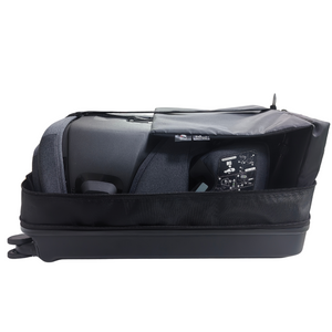 TinySeats Travel Case är en tålig och genomtänkt transportväska med hårt yttre skal och vadderad insida, särskilt framtagen för att skydda TinySeats Two under resor och förvaring. Väskan har teleskophandtag, fyra lättrullande hjul och ett TSA-godkänt lås – perfekt för flygresor, tågresor eller när du snabbt behöver byta bil.
